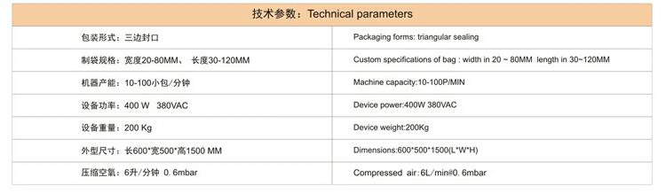 1.彩色觸摸屏和穩(wěn)定可靠的雙軸高精度輸出的PLC控制,制袋、計量、充填、封合、打碼、切袋一次完成。